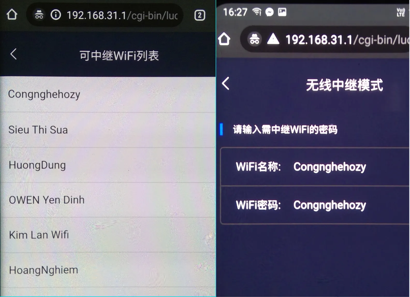 Lúc này, hệ thống sẽ quét và hiển thị danh sách các mạng Wi-Fi có sẵn. Bạn cần chọn chính xác tên mạng Wi-Fi chủ mà bạn muốn khuếch đại tín hiệu. Sau đó, nhập mật khẩu chính xác của mạng Wi-Fi chủ đó vào ô yêu cầu. Đây là bước quan trọng để Mi4C có thể kết nối thành công và nhận tín hiệu từ mạng gốc.