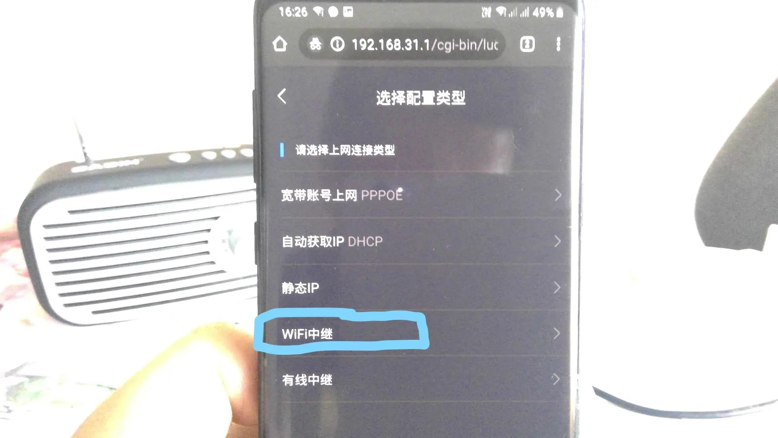 Sau khi vào giao diện, bạn sẽ thấy các tùy chọn cấu hình. Để thiết lập Mi4C thành bộ khuếch đại sóng, hãy tìm và nhấn vào vị trí chữ màu xanh ở cuối cùng bên phải như hình minh họa. Tiếp theo, trong các tùy chọn hiện ra, chọn mục WIFI ở dòng thứ tư. Điều này sẽ đưa bạn đến phần cài đặt mở rộng mạng.