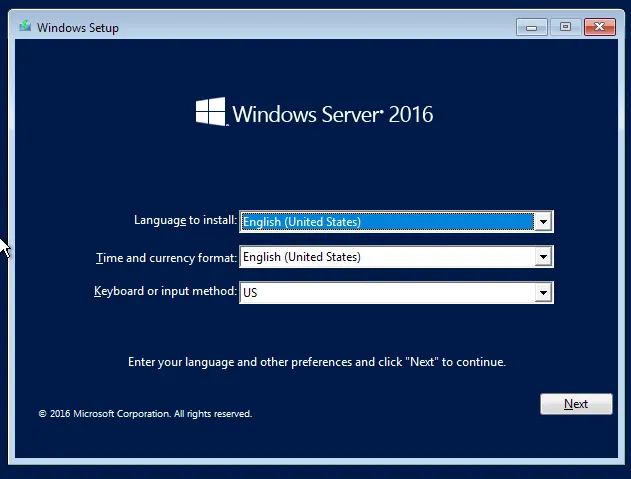 Các Bước Thực hiện Cài đặt Hệ Điều Hành Windows Server 2016