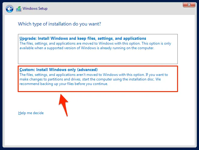 Bước tiếp theo là chọn loại hình cài đặt. Đối với lần đầu tiên thực hiện cách cài Windows Server 2016 trên VMware hoặc khi muốn cài mới hoàn toàn, bạn phải chọn tùy chọn Custom: Install Windows only (advanced). Tùy chọn này đảm bảo một quá trình cài đặt sạch, không giữ lại bất kỳ tệp tin hay cấu hình cũ nào. Tùy chọn Upgrade chỉ được sử dụng khi bạn muốn nâng cấp hệ điều hành hiện có mà vẫn giữ nguyên dữ liệu và chương trình. Tuy nhiên, phương pháp này tiềm ẩn nguy cơ lỗi và không khuyến khích cho môi trường ảo hóa mới.