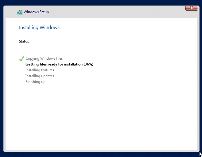 Sau khi quá trình sao chép tệp tin và cài đặt tính năng hoàn tất, máy ảo sẽ tự động khởi động lại. Đây là dấu hiệu cho thấy các bước cài đặt chính đã thành công.