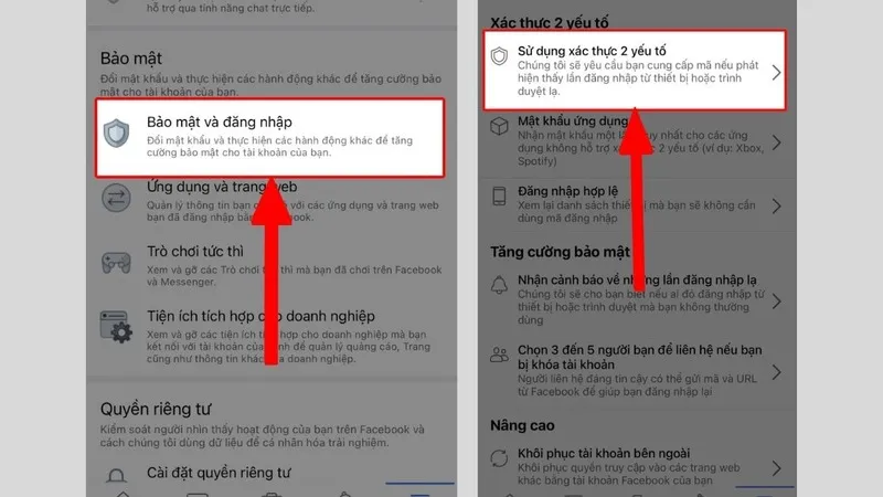 Nếu không tìm thấy, hãy sử dụng chức năng tìm kiếm trong phần Cài đặt (biểu tượng kính lúp). Gõ “Xác thực hai yếu tố” hoặc “2FA” để hệ thống dẫn bạn trực tiếp đến trang cần thiết. Đảm bảo bạn đang sử dụng phiên bản ứng dụng Facebook mới nhất.