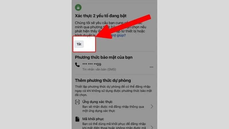 Bạn sẽ cần tìm và nhấn vào tùy chọn để tắt tính năng này. Thông thường, đó là một nút “Tắt” hoặc một công tắc gạt. Một thông báo cảnh báo sẽ xuất hiện trên màn hình. Thông báo này nhấn mạnh về những rủi ro bảo mật khi bạn quyết định vô hiệu hóa 2FA.