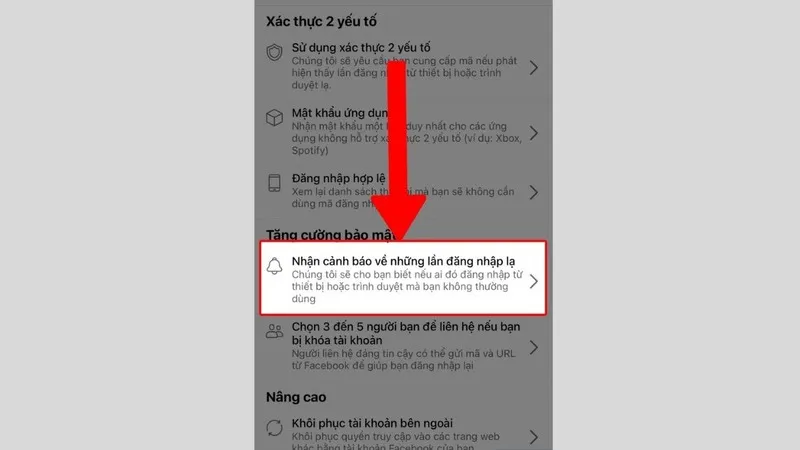 - Bật Cảnh báo Đăng nhập Lạ: Tìm mục “Nhận cảnh báo về những lần đăng nhập lạ” và nhấp vào đó.