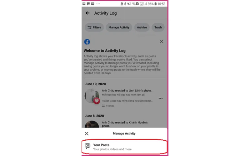 Bước 1: Truy cập trang cá nhân và Nhật ký hoạt động